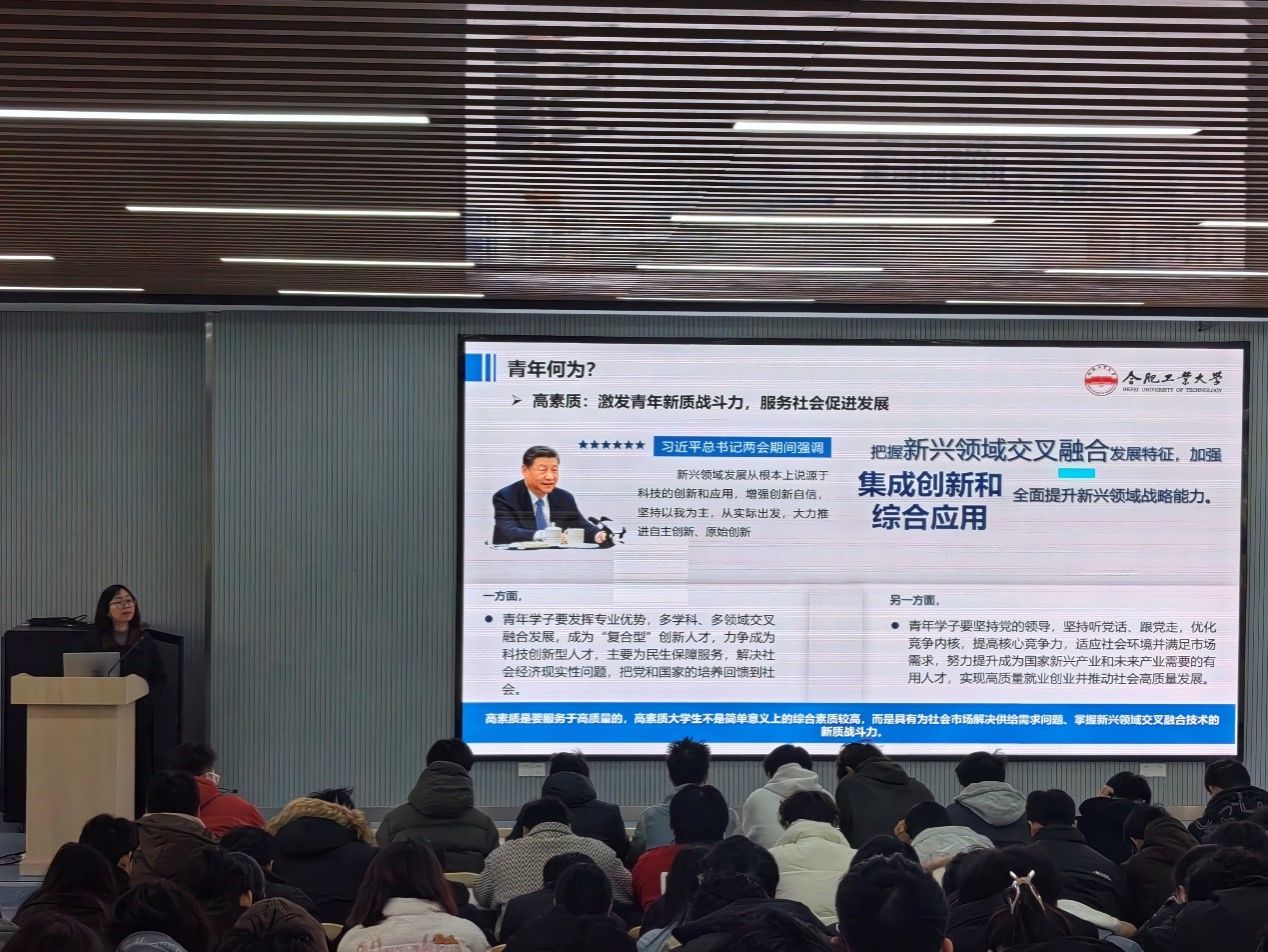 班会上,辅导员王锐琴围绕“回望”、“耕耘”和“征程”三个部分展开。首先,王锐琴以中国载人航天、中国高铁两大“国之名片”为切入口,带领同学们回顾了我国科技发展的艰辛历程和辉煌成就。随后,王老师介绍了公司教师在专业前沿的科研成果,杰出员工在行业的斐然建树,以及青年员工在科创赛事中的优异表现。最后,王老师通过青年榜样的典型事迹,生动讲述了学长学姐点滴科创故事,并号召同学们以科学家精神为指引,将科学梦融入学习动力,把青春梦汇入中国梦,不负时代期许,在科技强国征程中书写青春华章。