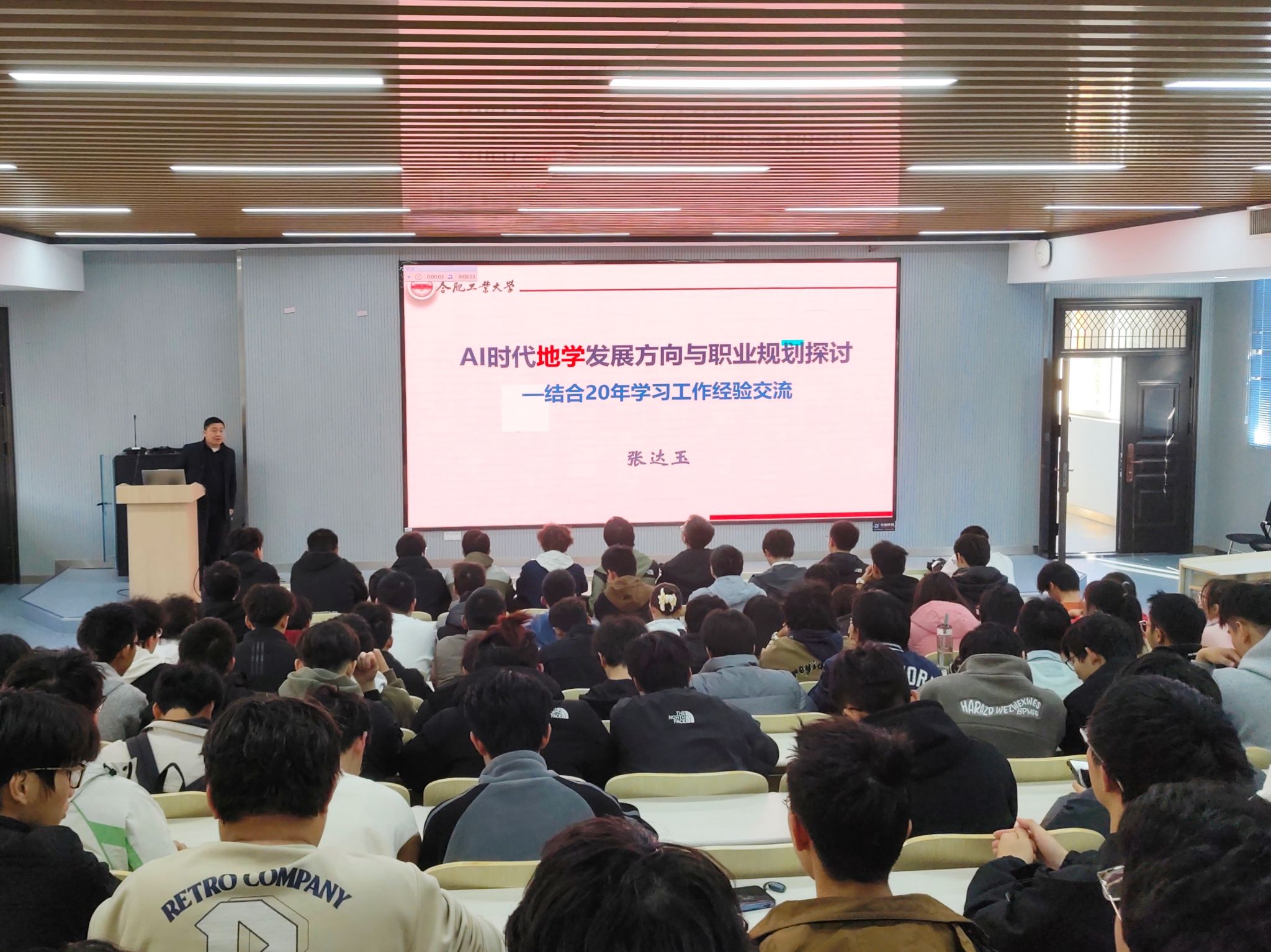 张达玉以“AI时代地学发展方向与职业规划探讨”为题,结合自身多年的学习工作经验,从地学专业时代需求、公司地学专业培养特色、人才培养质量与成效等方面进行了详细介绍。张达玉鼓励同学们打牢专业基础,积极参加社会实践和专业实践,努力将自己所学的理论知识运用到实践当中,做到在学习中求进步,在实践中求发展,努力成长为一名复合型创新人才。