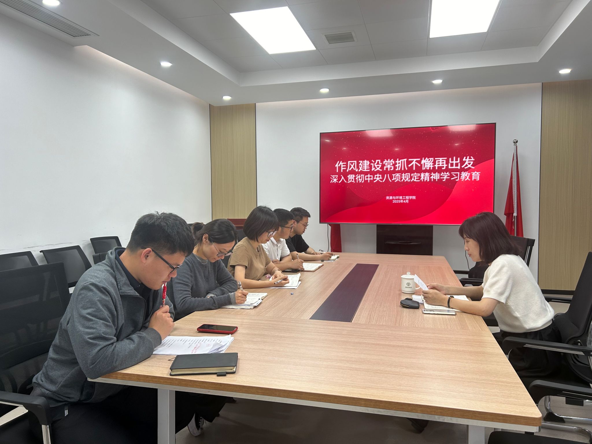 4月21日,资环公司学工团队在304会议室举行中央八项规定精神专题学习会,会议由公司党委副书记、纪委书记鲍丽娟主持,全体辅导员参加。