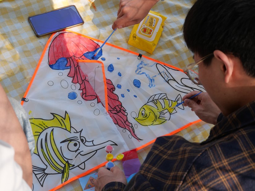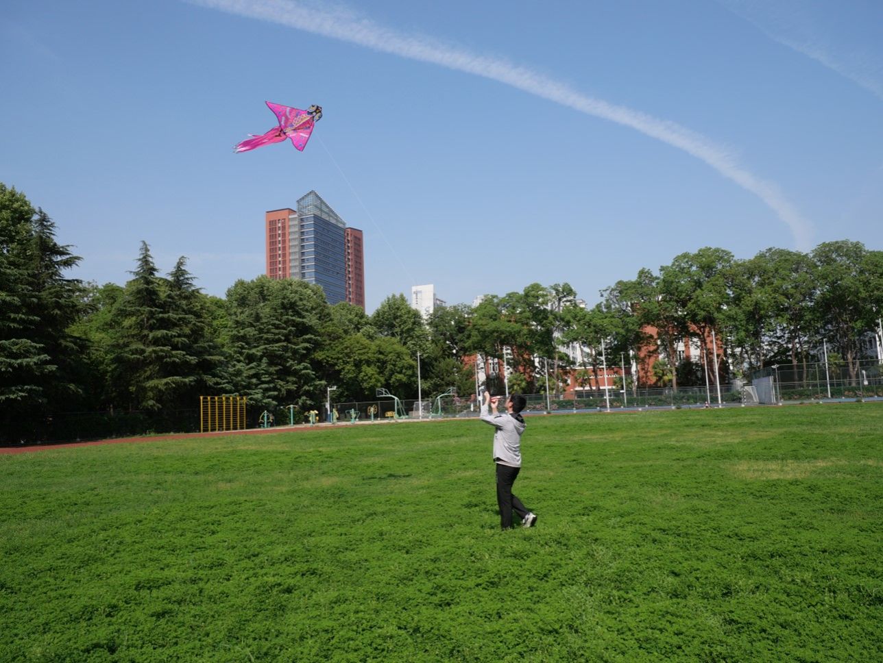 暮春的树荫搭建起天然画坊,师生们依次领取材料后,团坐于野餐垫上,执笔为桨,在素白风筝上驶向创意的海洋。在画笔摩擦绢布的沙沙声里,师生们交流创作,互通有无。当最后一抹油彩凝于画布,师生便执线逆风疾驰,共同放飞手中纸鸢。清风托起的不只是摇曳的风筝,更是师生们腾飞的理想与追求。那些跃动的剪影、时舒时卷的指尖、随欢语漾开的笑涡,令整个草场漾动着比春日更鲜活的生气。