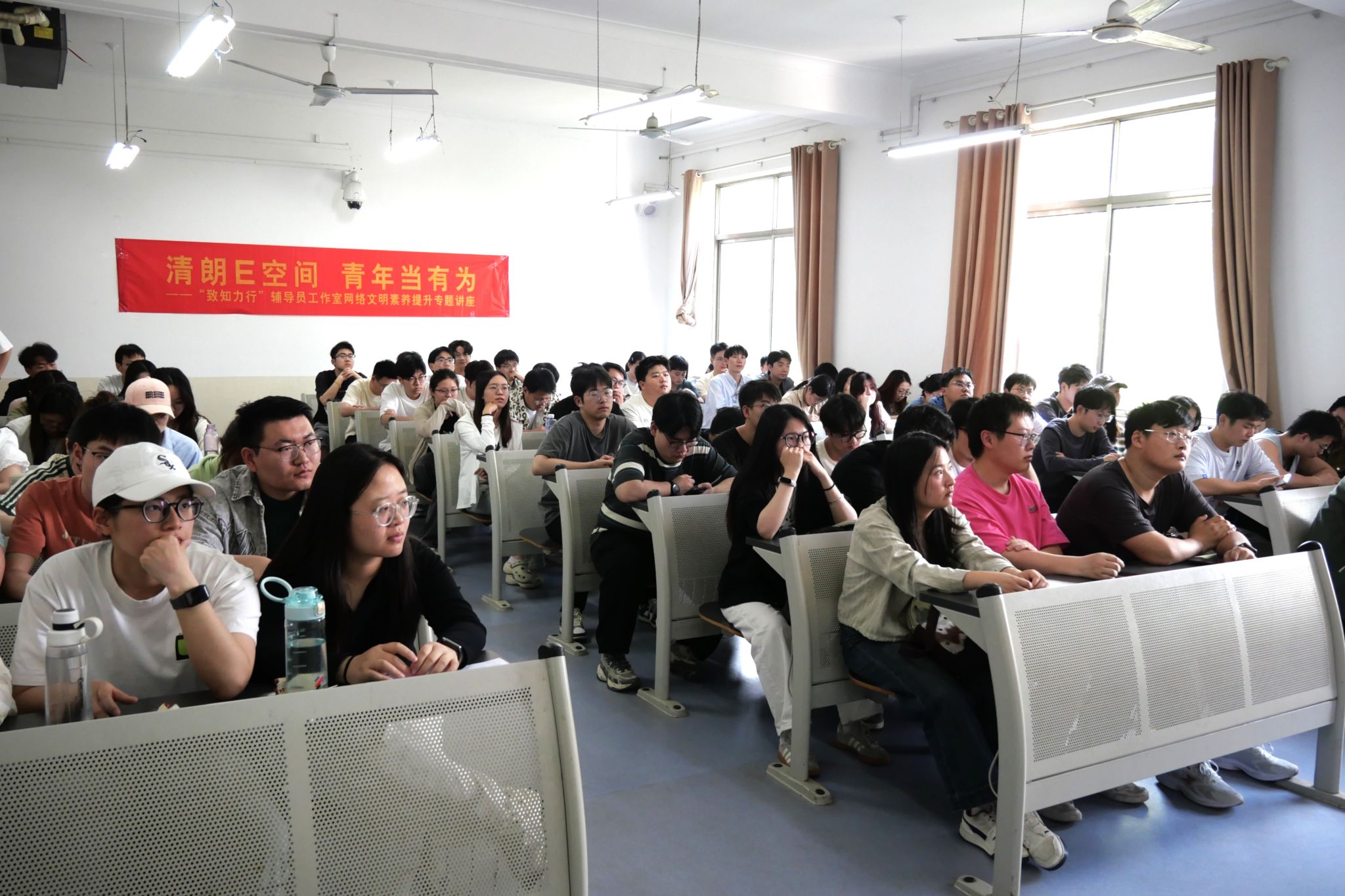 为增强老员工网络安全意识,引导员工依法、文明、健康用网,4月29日下午,“致知力行”辅导员工作室于屯溪路校区主教学楼315教室开展“清朗E空间 青年当有为”网络文明教育讲座。活动邀请党委员工工作部(处)网络信息管理科雷磊老师主讲,来自TapTap点点、化学与化工公司、计算机与信息公司等3个公司100余名员工参加。