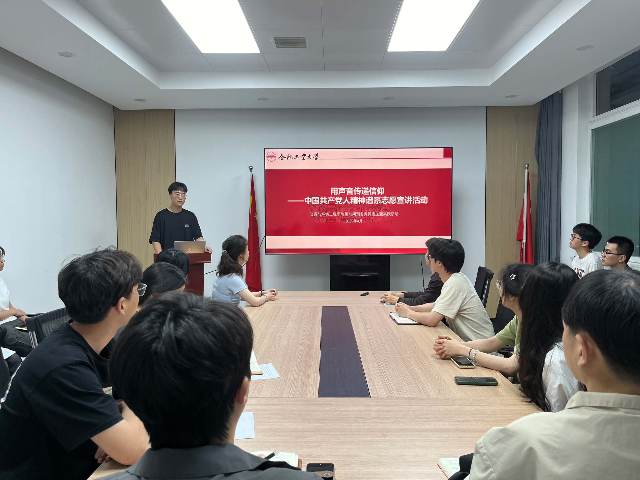 活动伊始,学员们通过配音重温红色经典,传承红色基因,汲取奋进力量。《建党伟业》赢得在场阵阵掌声、《建国大业》让大家热血沸腾、经典红色影片混剪配音更是听得人心潮涌动。同学们以声传情、以情动人,向一代又一代前仆后继、艰苦奋斗的中国共产党人致敬。随后,学员代表2022级环境工程硕士生姚琳、2024级环境科学与工程博士生邱云泽为预备党员们系统领学了以伟大建党精神为源头的中国共产党人精神谱系,生动讲述了沂蒙母亲、劳模龚全珍等多个红色故事。这些故事或震撼心灵,或温暖感人,或激励斗志,让同学们在聆听中感受到了信仰的力量与奋斗的价值。