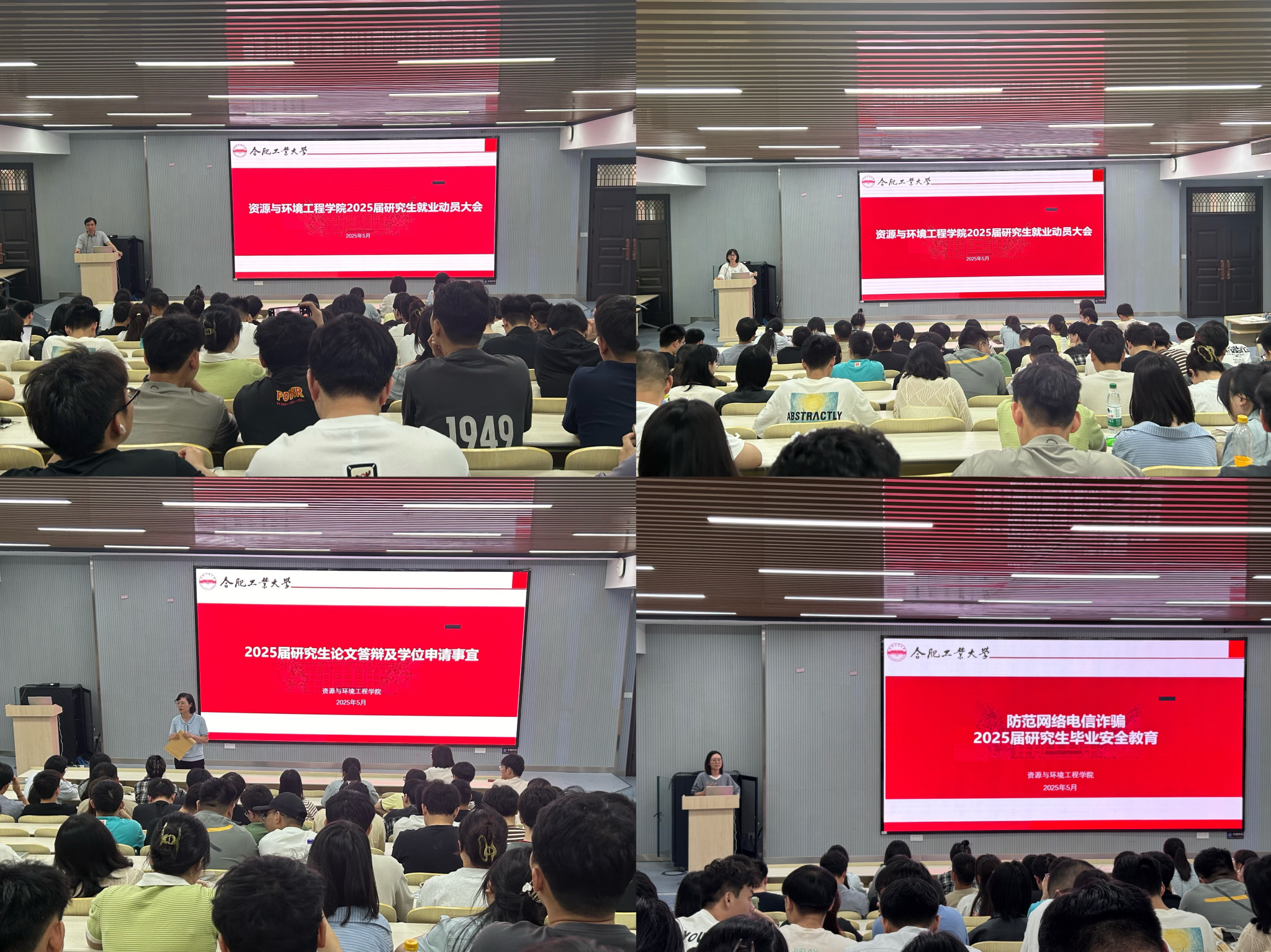会议伊始,南国君发表讲话。他结合生动的案例向毕业生们提出殷切期望,嘱托毕业生在人生的关键转折阶段,做到凡事讲政治、凡事有规划、凡事分主次、凡事求上进、凡事看未来、凡事重长远、凡事思后果,希望研究生以文明有序的方式告别母校、拼搏上进的姿态迎接新征程。王锐琴结合当前就业形势进行了就业再动员,她剖析了当前毕业生择业就业存在的深层次问题,鼓励同学们合理认知、转变就业观念,积极行动、抢抓就业机遇,同时保持良好心态,勇于面对挑战和困难,不断提升自己的综合素质和竞争力。杨青亮就研究生论文答辩、学位申请要点及关键时间节点和注意事项展开指导,提醒毕业生以严谨态度完成学业,从容迈进未来的科研或职场道路。徐晨晨围绕就业政策、毕业流程等近期重点工作进行说明,提醒研究生在求职过程中要防范求职陷阱,维护好自身合法权益。