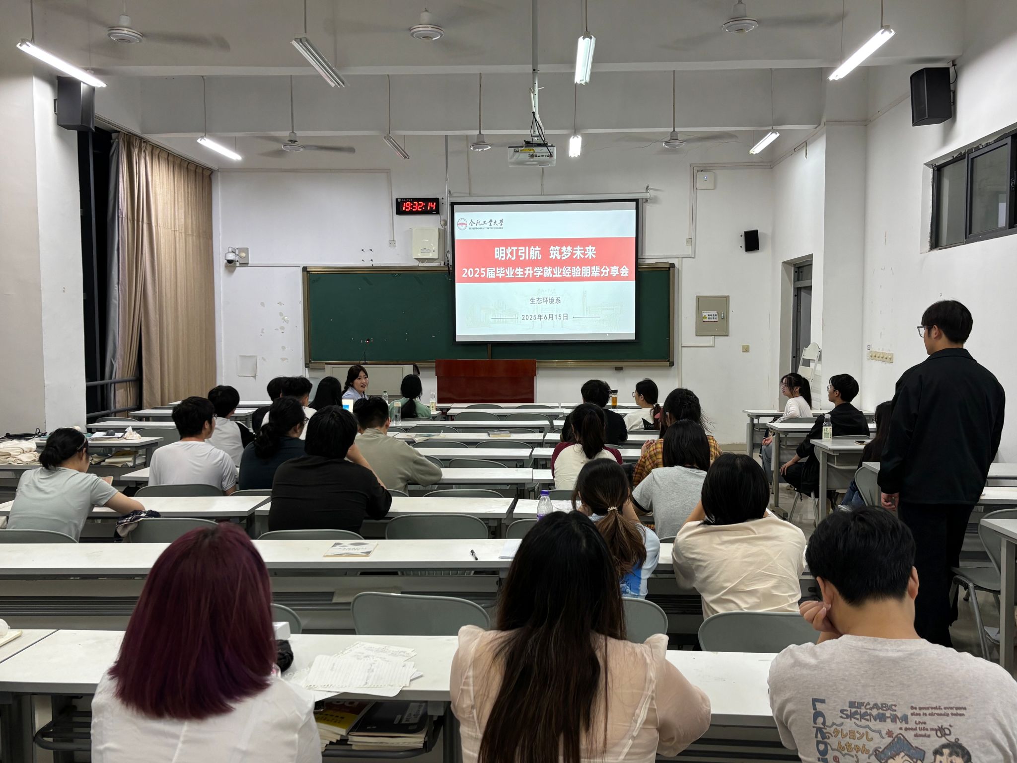6月15日晚,生态环境系在新安学堂312教室开展“明灯引航 筑梦未来”的升学就业经验朋辈分享会。会议由生态环境系教工党支部书记、环境生态工程23-1班班主任付贤钟主持,环境生态工程23-1班全体员工参加会议。