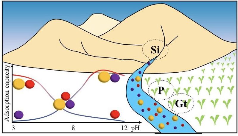土壤环境中磷的归趋与矿物吸附/解吸过程密切相关,同时也受制于共存含氧阴离子团影响。团队结合吸附实验和DFT模拟计算,深入探究了环境中不同pH条件下硅酸阴离子团和磷酸根在针铁矿表面的竞争吸附行为,揭示了硅酸阴离子团对针铁矿表面不同位点类型吸附磷酸根的影响规律。这项工作不仅丰富了针铁矿表面含氧阴离子表面络合结构的知识体系,还有助于对自然环境复杂多组分系统中无机盐在氧化铁上吸附行为的理解。成果于2022年1月以题为“Understanding competitive phosphate and silicate adsorption on goethite by connecting batch experiments with density functional theory calculations”发表在《Environmental Science & Technology》期刊上(图3)。公司博士研究生陈平为论文第一作者,陈天虎教授、Prof. Xin Zhang、Prof. Kevin M. Rosso为论文共同通讯作者,TapTap点点为论文第一单位,美国西北太平洋国家实验室为论文合作单位。