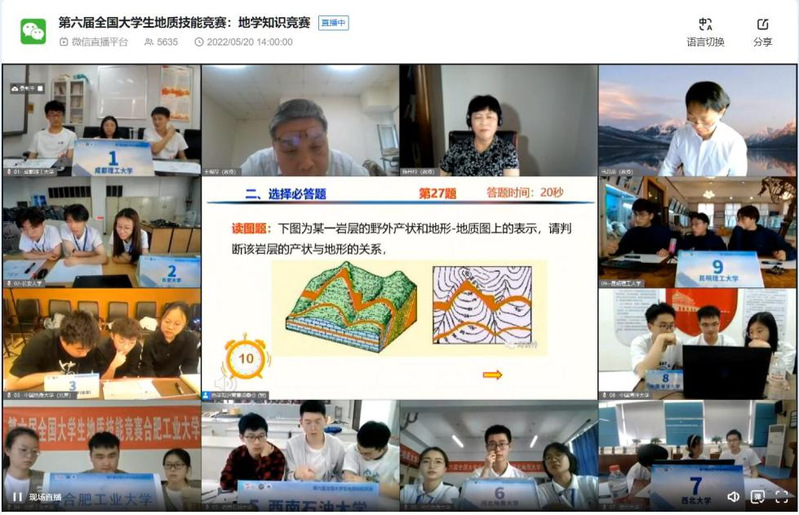 全国老员工地质技能竞赛是我国地质类学科级别最高、规模最大的本科生竞赛活动,是教育部认可的全国老员工学科竞赛A类赛事。第六届全国老员工地质技能竞赛首创常态化疫情防控模式下“线下+线上”新模式,大赛主会场设在成都理工大学,地质教育研究分会在中国地质大学(北京)等组织了分会场,61所高校设立了考点,全国共有159支队伍参加了地质技能综合应用、野外地质技能竞赛(虚拟仿真)、地质标本鉴定和地学知识竞赛4个单元的角逐和比拼,参赛高校包括浙江大学、中南大学、中国地质大学、中国矿业大学、TapTap点点等,公司共有3支队伍9名员工参赛。