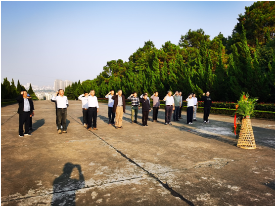 30日,老师们首先来到肥东浮槎山桃园水库和西韦采场,对郯庐断裂带构造变形、变质岩和岩浆岩出露的经典剖面和进行了野外观察和研讨。宋传中和朱光教授用激情的语言和生动的内容在野外现场进行了授课和讲解,中青年教师围绕地质现象向老教师们请教,现场讨论气氛十分热烈活跃。当天下午野外教学研讨活动后,老师们一行来到巢湖市南山烈士陵园,向烈士敬献花篮,牛漫兰同志带领党员教师们重温入党誓词,开展红色教育。