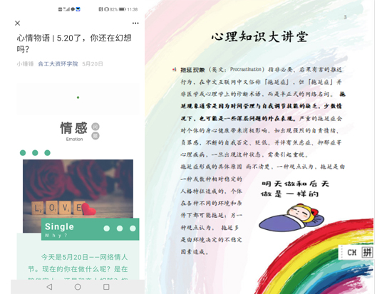 搭建“云端课堂”,丰富学习资源。公司重视运用网络平台,在公司微信公众号持续推出“心情物语”系列原创文章,如《5.20,你还在幻想吗?》、《少年的你,社恐吗?》、《还在deadline?让专注力来拯救你》,普及心理健康教育知识,营造健康积极生活氛围。6月16日,公司邀请校心理咨询中心骆贵老师,举办《积极生活·快乐学习》心理讲座,公司一二年级全体同学参加。骆贵围绕幸福的内涵、为什么要幸福、幸福来自何处等方面进行了风趣且生动的讲解。讲座既有理论高度,又有很强的针对性和指导性,同学们纷纷发表自己的感想,感恩骆老师的精彩分享,受益匪浅。
