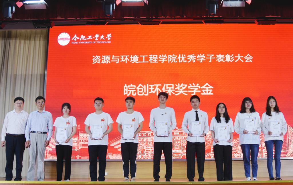 校优秀团干、2019级地理信息科学华松作交流发言。社会捐资方安徽省环境保护产业发展促进会秘书长张登亮、北京合众共达环境技术有限公司董事长吴世飞、安徽美自然环境科技有限公司董事长周其胤、安徽美自然环境科技有限公司副总经理赵军、皖创环保股份有限公司副总经理汪国富分别致辞,他们介绍单位发展历程和设奖初衷,并对获得获奖的员工表示肯定和赞赏,对全体同学表达了祝福。公司经理袁峰总结讲话,他对关心和支持公司发展的捐资企业表示感谢,对获奖个人和集体表示祝贺,希望全体同学们认真学习领会习近平总书记关于青年的重要论述,坚定信念,志存高远;勤奋好学,勇于进取;求真向善,锤炼品德。在拼搏中施展抱负,在奋斗中发挥才智,在平凡中开拓创新,积极投身国家建设,成为有志青年。
