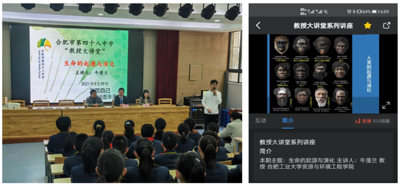 2021年3月29日下午,公司牛漫兰教授再次受到合肥市第四十八中学的邀请做客“教授大讲堂”。本次,牛漫兰教授带领沈岳峰老师和孙毅博士以“生命的起源与演化”为题为四十八中的同学们做了一场别开生面、深入浅出的学术报告。这次报告除了以线下的形式进行,还创新采用在线公开课等形式线上直播,观看人次达800余人。