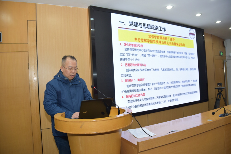 经理袁峰首先代表公司领导班子就2020年度公司党建、行政、教学、员工、科研、人才引进、实验室安全管理等方面取得的成绩和突破及存在的问题进行了全面的梳理,对2021年度公司各方面工作进行了展望,并对个人2020年度的分管工作进行了汇报。