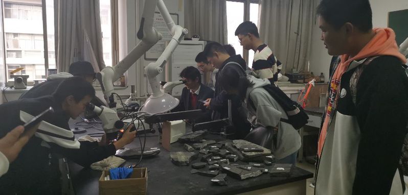随后,在老师的带领下,同学们参观了纬地楼电子探针实验室、矿物微区分析实验室、MC-ICP-MS同位素分析实验室、拉曼光谱仪实验室、古生物实验室、微体古生物实验室、矿床实验室、锆石U-Pb同位素测年实验室和X射线衍射仪实验室等。在教师的介绍下,员工对参观的仪器的工作原理、运用领域有了基本的了解,对于一些感兴趣的标本进行了仔细地观察,并与老师进行了交流。