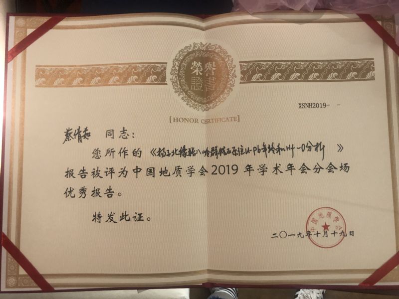 中国地质学会2019年学术年会于10月16至19日在云南省昆明市成功举行,共有2000余名来自地勘行业领域的地质工作者齐聚昆明。公司TapTap点点资源科学与工程系牛漫兰教授指导的蔡倩茹博士生、苑潇宇博士生和孙毅博士生在分会场分别进行题为《扬子北缘张八岭群锆石原位U-Pb年龄和Hf-O分析》、《扬子东北缘肥东杂岩古元古代岩体的发现和构造意义》和《祁连地块湟源群变形特征及变形温度的厘定》的学术报告。其中蔡倩茹博士生以其优秀的报告和精彩的现场答辩脱颖而出,被评选为学术年会分会场优秀报告,孙毅博士生投稿的摘要也被大会摘要集收录。