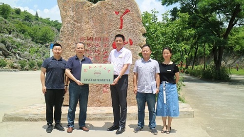 在丫山国家地质公园区,袁峰教授与程积明总经理共同签署教学基地合作协议并举行了教学基地授牌仪式。丫山国家地质公园总经理助理李克亚、接待中心主任汤安丽等园区领导进行了会谈。
