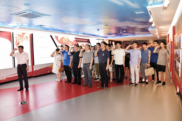 参观结束后全体党员在公司党委书记李强的带领下在党旗前举行庄严的党员宣誓活动,重温了入党誓词。