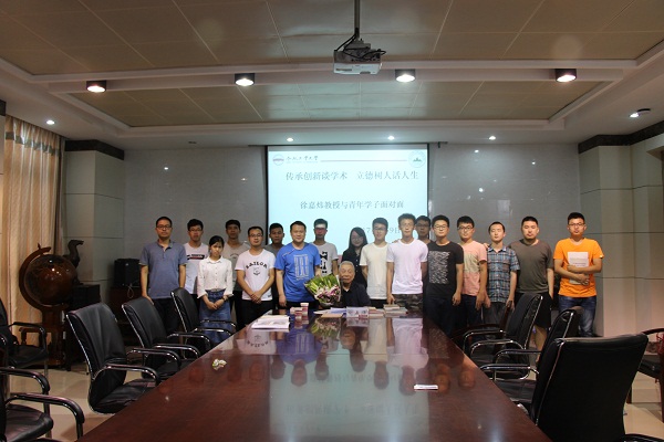 徐嘉炜教授首先围绕发现以及研究郯庐断裂系的风雨历程,讲述了青年学子成才的基本要素:一是心有所想,立志为人类发展做贡献;二是抓住机遇,理论知识学习和实践并重;三是迎难而上,奋斗到底。接着他结合自己毕生的学术之路,希望同学们做到四个坚持:坚持站在前人研究的肩膀上,坚持博采众家之长,坚持点滴积累和随时记录思想火花,坚持把经验上升为科学。最后,他鼓励广大学子要树立专业自信、能力自信,以学术兴趣和钻研精神为舟,早日从树苗成长为对社会有用的参天大树。会后,徐嘉炜老师为青年学子签名赠书,员工向他献花并合影留念。