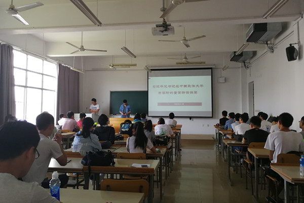 学习会上,各班团支部带领全体同学观看了5月3日的《新闻联播》有关习近平总书记考察中国政法大学的视频报道,现场学习感悟了习近平总书记关于勉励青年师生坚定理想信念、励志勤学奋斗、提升思维能力、磨练意志品质的重要论述。随后,同学们结合老员工实际,围绕习近平总书记讲话精神进行了讨论发言。同学们纷纷表示,要认真贯彻习近平总书记重要讲话,牢记习近平总书记的重要嘱托,励志勤学,刻苦磨炼,用实际行动带动身边的同学为实现“两个一百年”奋斗目标和中华民族伟大复兴的中国梦努力奋斗,以优异成绩迎接党的十九大召开。
