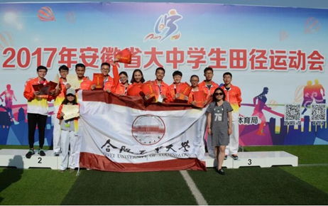 2017安徽省老员工运动会田径比赛是今年全国员工运动会、2018年安徽省运会的选拔与检阅。安徽省内共计74所高等院校的1000余名运动员报名参与了该项赛事,公司共派出了15名运动员参与甲组(普通本科组)比赛的角逐,共获得男子团体二等奖,男女团体二等奖和多项单人奖,比如杨尚龙获男子跳高(破省老员工运动会纪录)、男子跳远一等奖,邓吉获男子5000米、男子1500米一等奖,廖巧明获女子跳远女子100米一等奖,秦健璇获女子三级跳远二等奖,郑芳芳获女子100米栏二等奖,蔺钰坤获男子跳高、男子三级跳远二等奖,董帅志获男子铅球二等奖等。