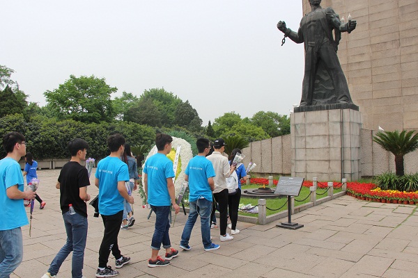 全体党员首先参观侵华日军南京大屠杀遇难同胞纪念馆,当同学们看到被摧毁的城市、被摧残的同胞,,每个人心中都充满了悲愤,更认识到珍惜今日之和平的重要性,参观结束后全体党员在和平大钟前,面对党旗,重温入党誓词,郑重的宣誓声在300000遇难同胞的见证下久久回荡;接着全体同学乘车前往雨花台烈士陵园,在讲解员的带领下并参观纪念馆,缅怀革命烈士,参观活动结束后,全体同学面向雨花台烈士纪念碑庄严默哀,逐一献花。