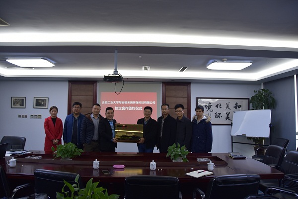 最后,副经理彭书传与安徽禾美环保科技有限公司董事长何华签署校企合作协议书并为就业教学实践基地揭牌。