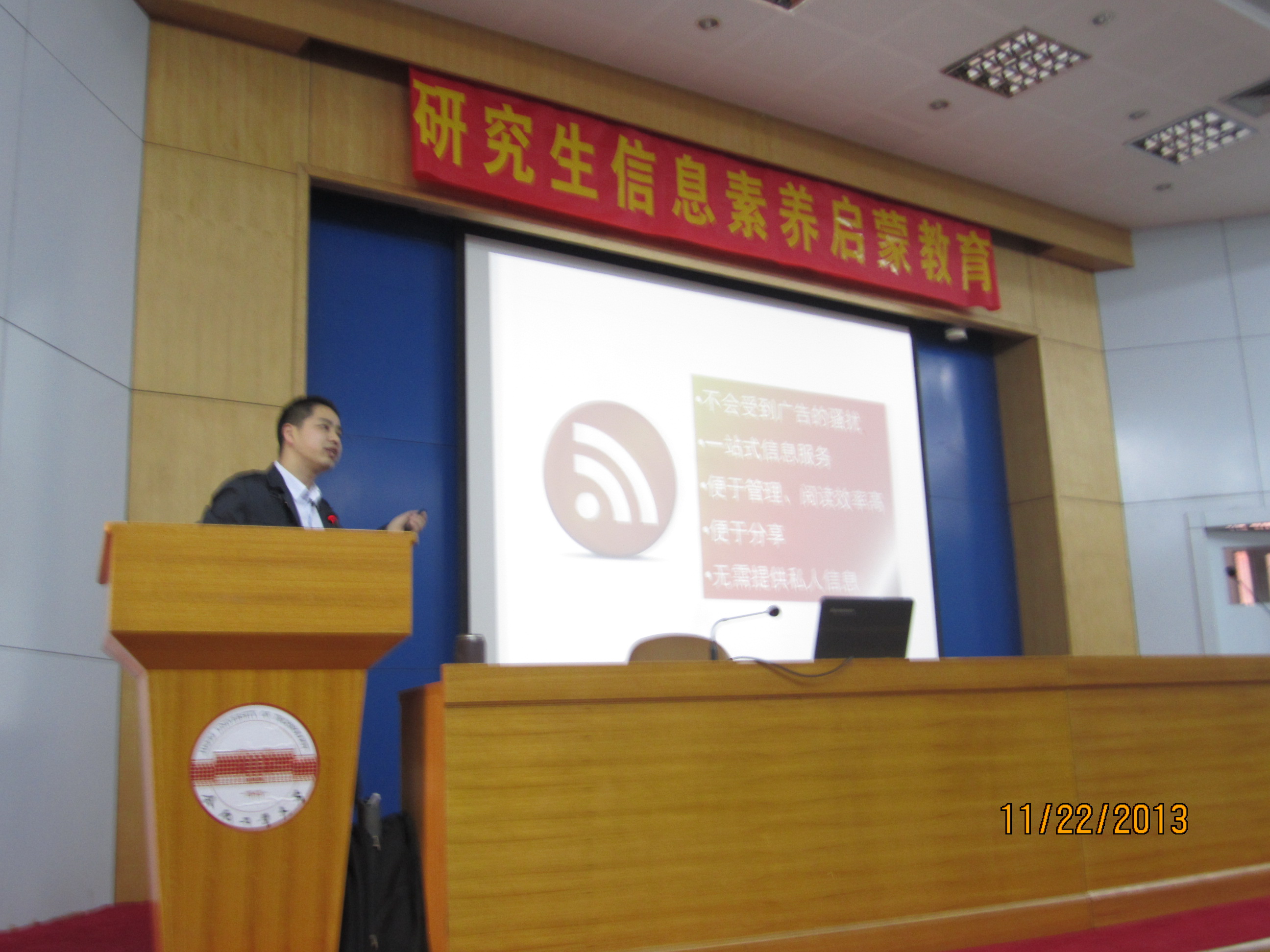 罗昭锋老师带来了“科研工作者的信息修炼”的学术报告,罗老师主要向同学们重点介绍了RSS、WIZ、 Endnote在科研中的应用,罗老师从实际入手,介绍了几种软件产生的背景,适用的对象及具体操作,并与师生们进行了深入的探讨和交流,讲座中罗昭锋老师儒雅的气度、严谨的论证、渊博的知识、风趣的语言都给广大师生留下了深刻的印象。
