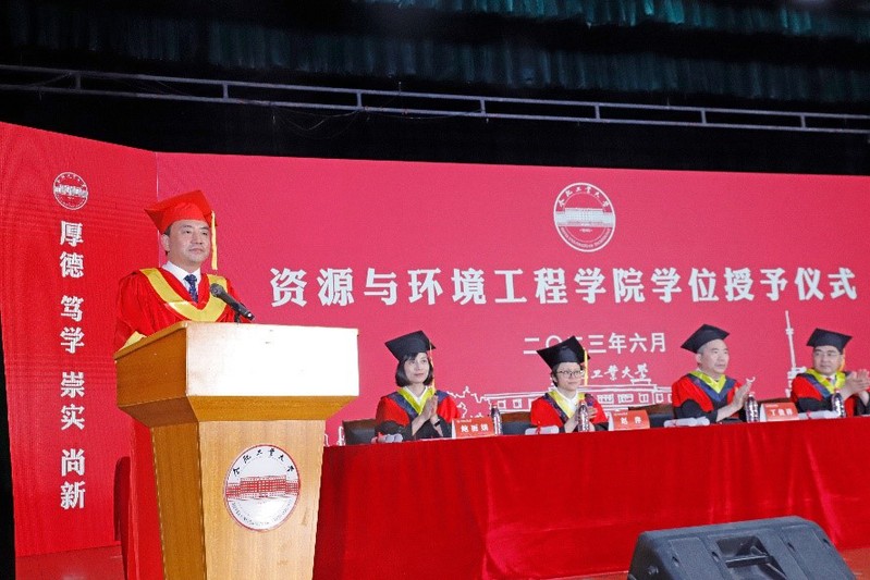 校十佳老员工、地理信息科学专业华松,环境科学与工程专业研究生徐凯杰分别作为本科生、研究生毕业生代表发言,他们深情回顾了校园生活的点点滴滴,对母校的悉心培养、老师的辛勤指导和父母的无私奉献表达了感激之情,并表示将永念母校、永怀感恩、锤炼品德、实学实干,以聪明才智贡献国家,以开拓进取服务社会,用优异成绩回馈母校。