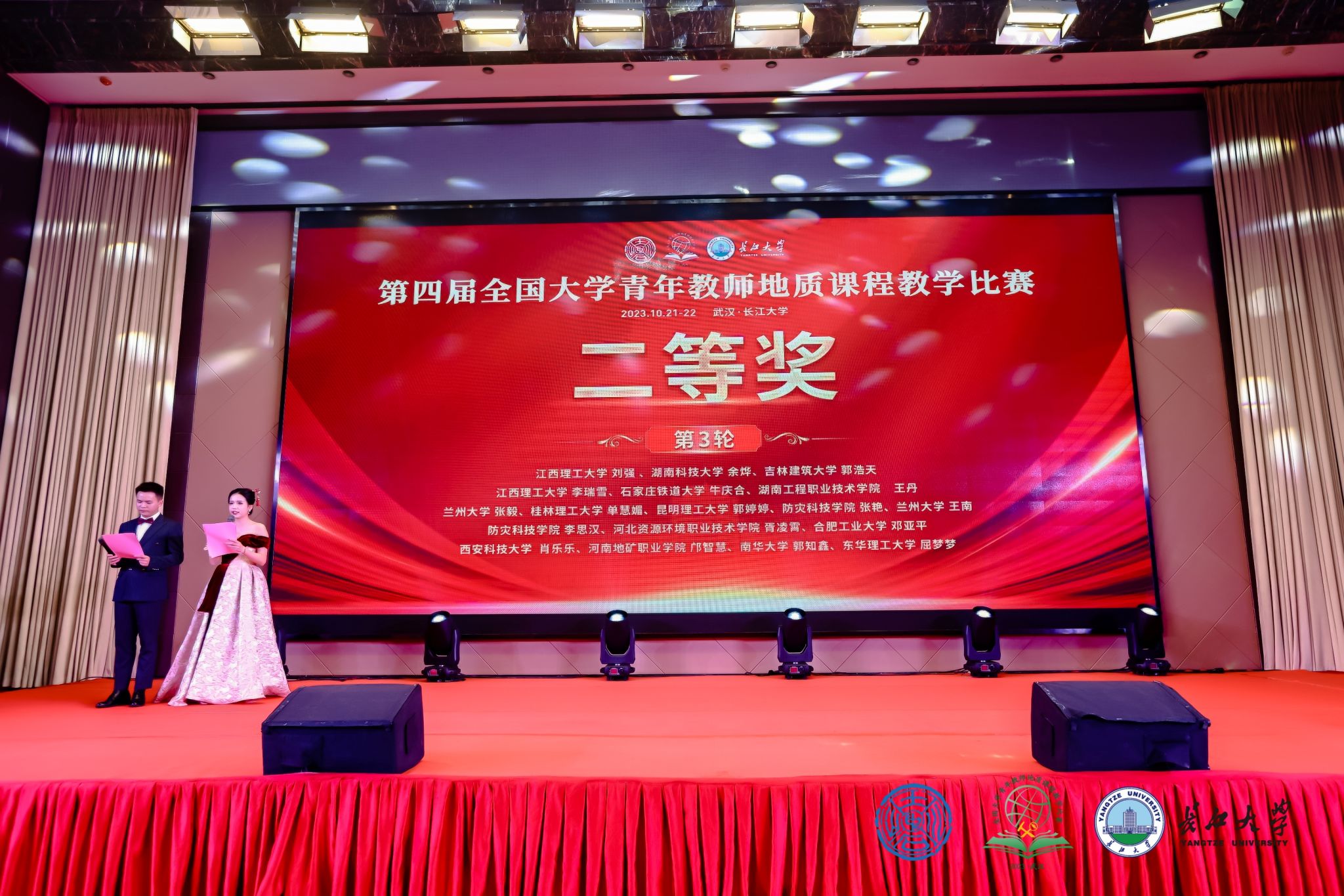 10月20-22日,第四届全国大学青年教师地质课程教学比赛暨中国地质学会地质教育研究分会2023年学术年会在长江大学武汉校区举行。经过激烈的竞争,公司安慰和邓亚平两位青年教师均荣获二等奖,取得优异成绩,为公司赢得了荣誉。资源科学与工程系主任刘俊教授应邀担任本次课程教学比赛评委,张达玉教授在学术年会上作教研学术报告。