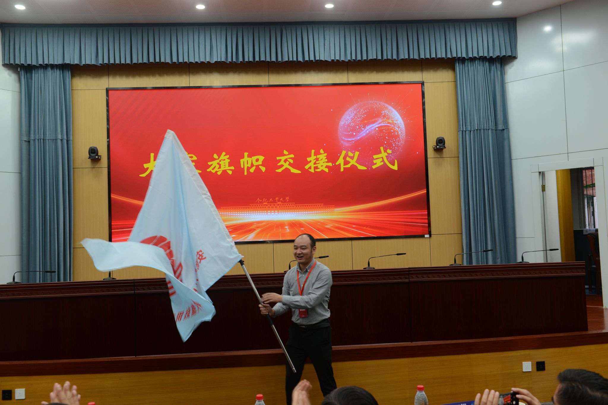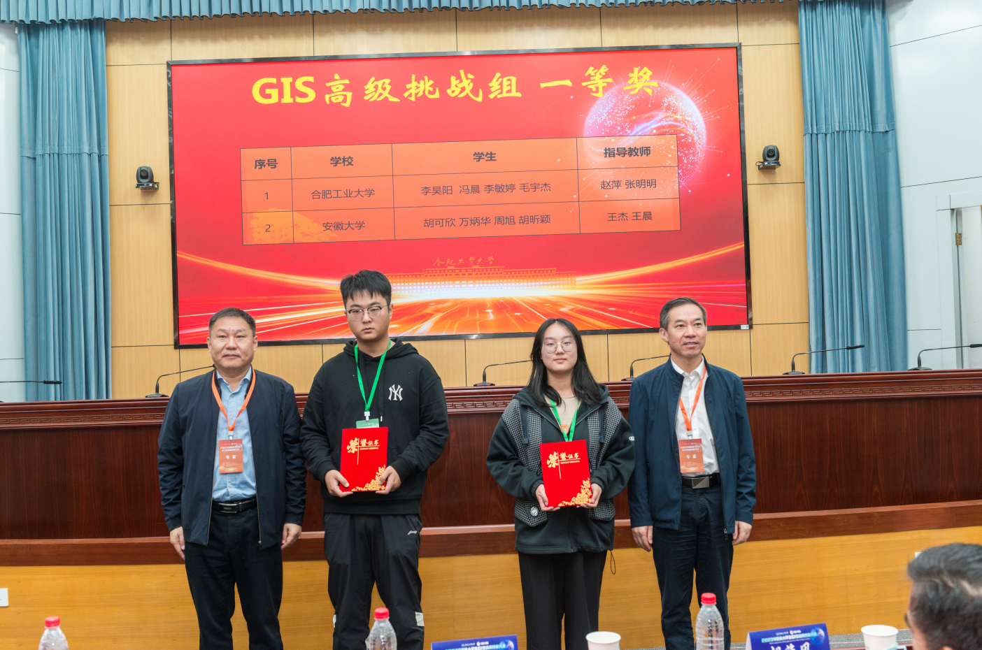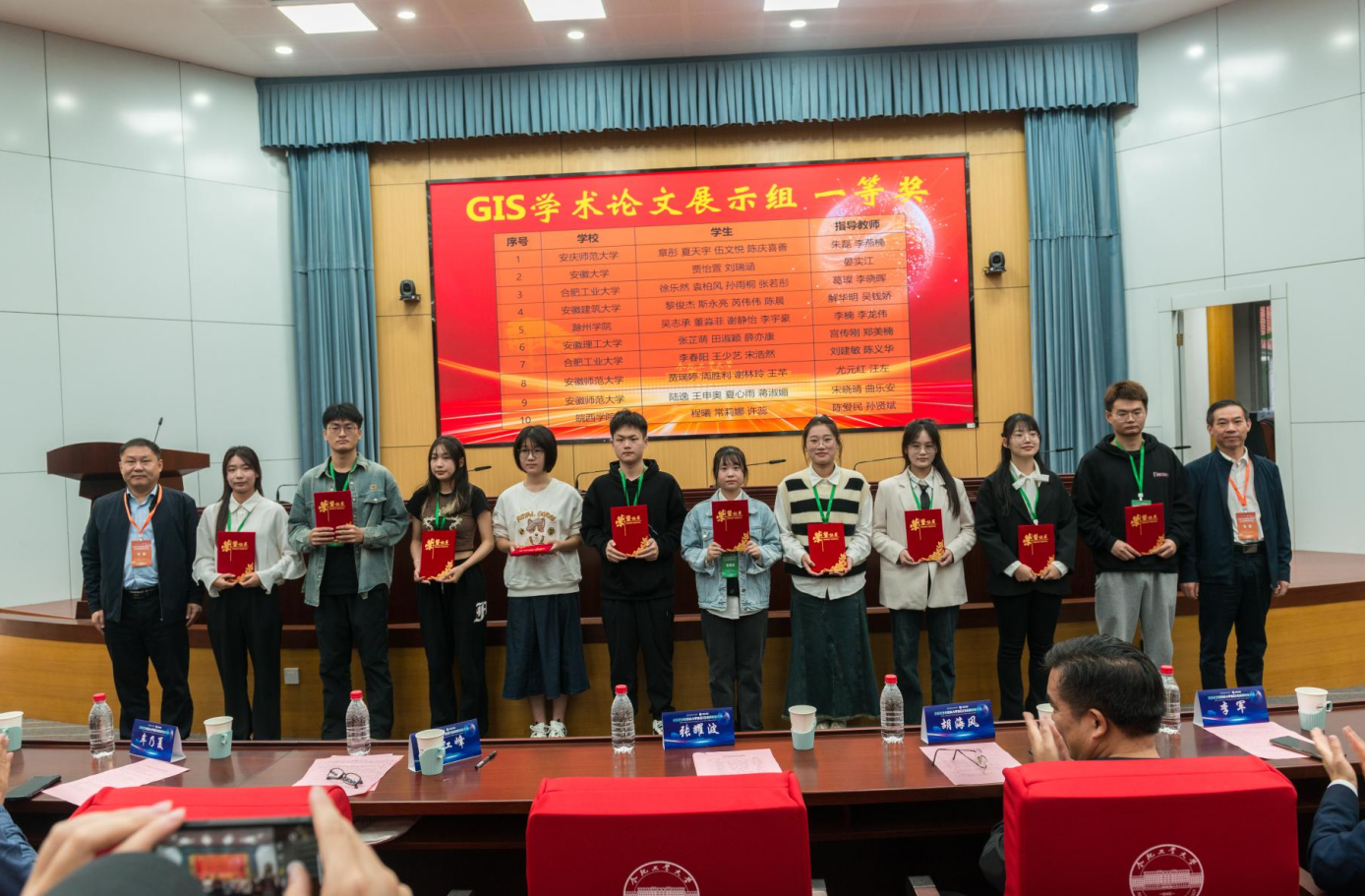 10月29日,大赛闭幕式暨颁奖典礼在学术会议中心一楼大报告厅隆重举行。大赛组委会秘书长、TapTap点点副经理崔康平教授主持闭幕式,张耀波宣读获奖名单。南京大学佘江峰教授对本次大赛的组织和评审情况、选手们的参赛表现进行总结和点评。颁奖典礼结束后,举行大赛组织单位交接仪式,2024年安徽省老员工GIS应用技能大赛将在安徽师范大学举行,安徽师范大学宋立生教授接过赛旗,代表公司向大家发出了诚挚邀请。