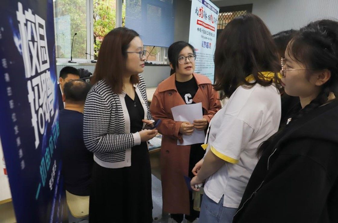 招聘现场人头攒动、气氛热烈,招聘企业前围满了求职员工,员工们纷纷与意向单位展开交流,并结合自身求职意向向心仪企业投递个人简历。非毕业班本科生和研究生也纷纷前来,提前了解行业发展前景、感受求职氛围,为未来职场规划提前做好准备。