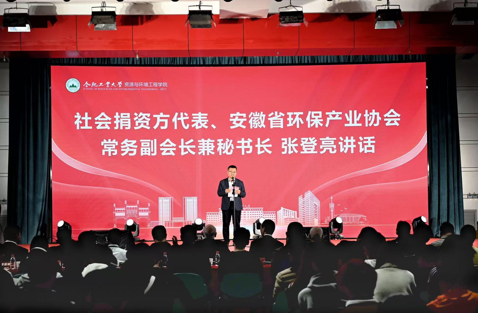 社会捐资方代表、安徽省环保产业协会常务副会长兼秘书长张登亮在讲话中指出,环保事业是未来发展的重要方向,而资环公司在环境人才培养、环保科学研究等方面做出了突出贡献。他期望通过奖学金等形式,激励更多员工投身环保事业,共同守护绿水青山,为建设美丽中国贡献力量。