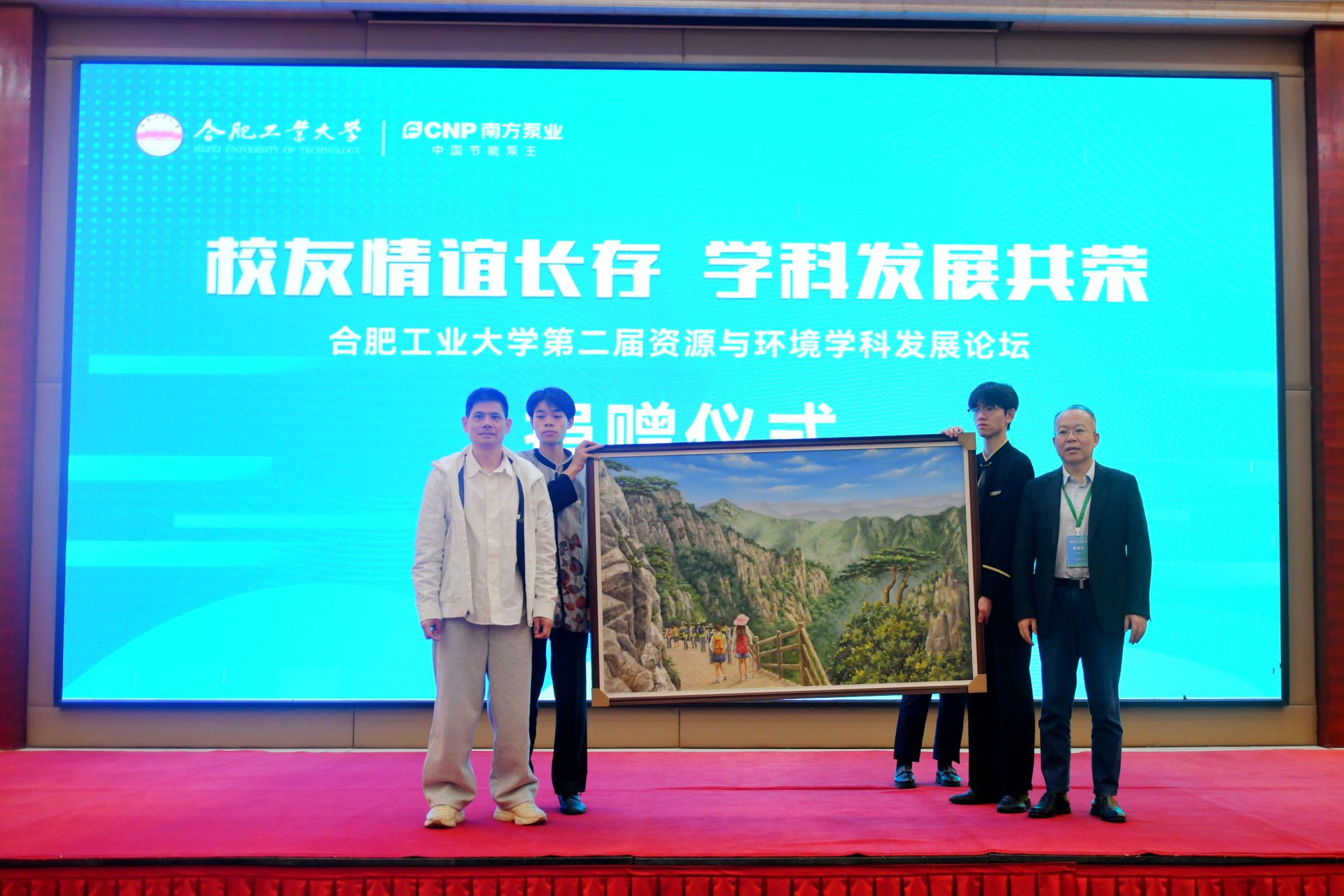 79级水文地质与工程地质专业员工、全国勘察设计大师、中机国际工程设计研究院有限公司顾问总工张炜,81级地质专业员工、广州市天高集团有限公司董事长兼总裁李平,99级环境工程专业员工、南方泵业股份有限公司董事长沈海军,04级资源勘查工程专业员工、国家优青、浙江大学地球科学公司教授刘佳作为员工代表发言。他们从励志求学、成长发展、服务社会等方面回顾了在母校难忘的成长经历和毕业后报效祖国的实践历程,号召全体员工充分挖掘自身优势,发挥桥梁纽带作用,勠力同心助推母校建设发展。地质81级员工、美籍华人艺术家林圣元捐赠了专门为公司创作的地质考察实践油画作品,并介绍了创作韵意和艺术构想。
