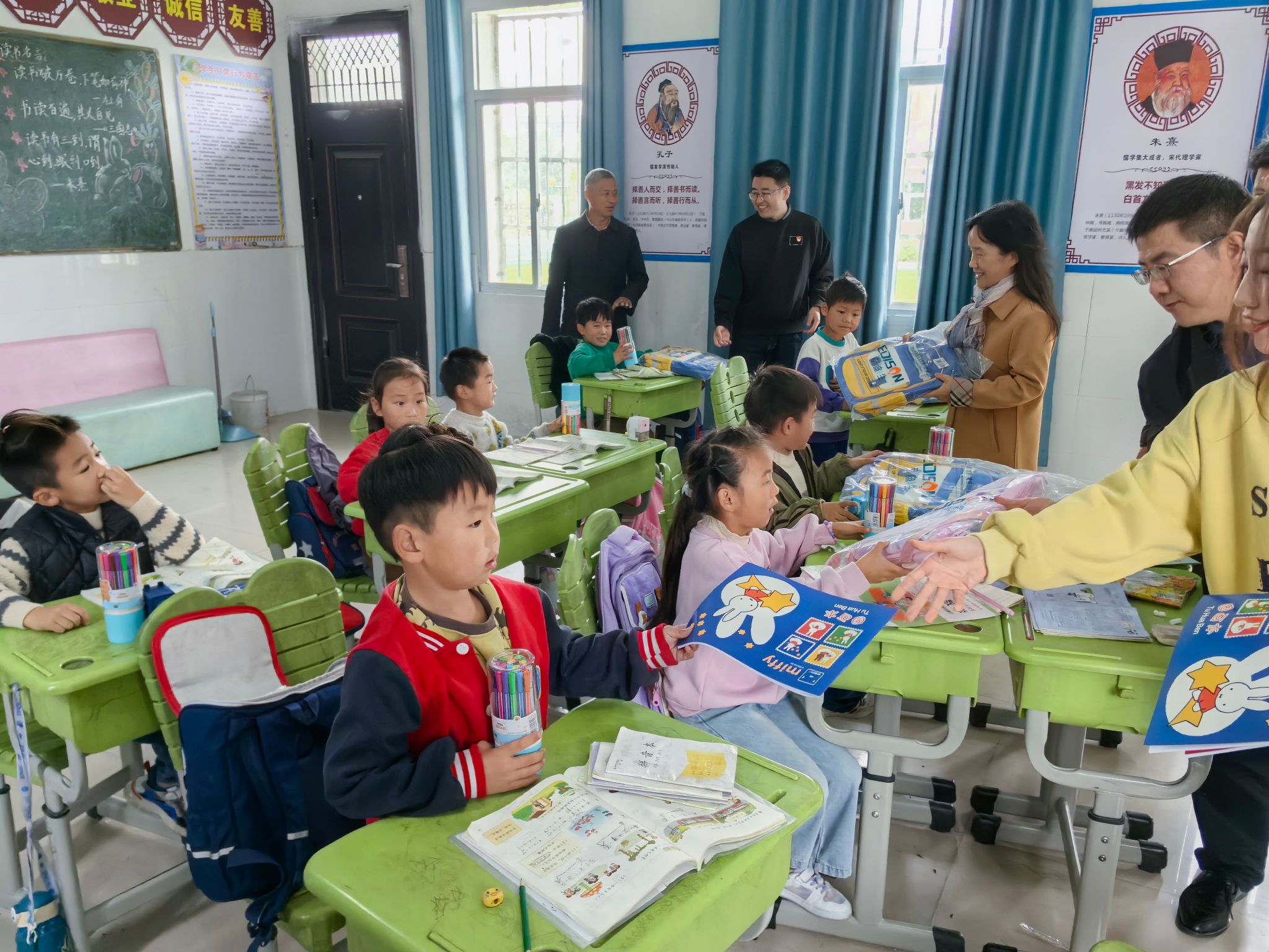 在砂坝幼儿园、砂坝小学,公司为40多名幼儿园小朋友和小员工送上了含有书包、彩笔、画画本等学习用品的爱心礼包,并和孩子们进行亲切交谈,详细了解他们的学习、生活和健康情况。